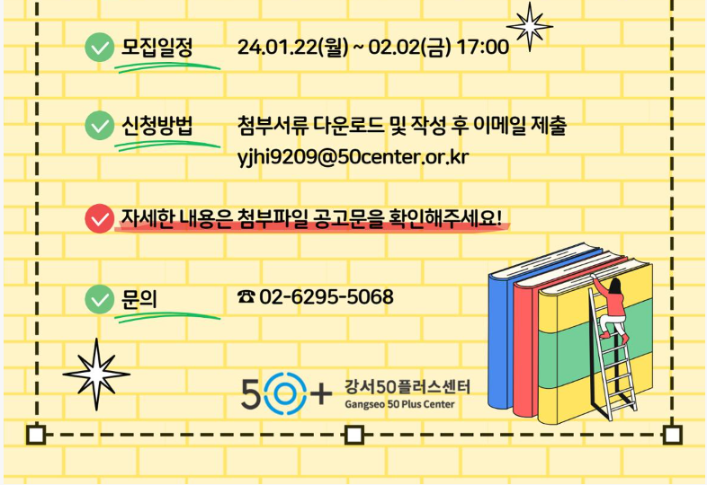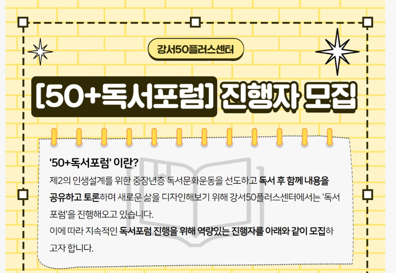 1. 강서50플러스센터에서 '50+독서포럼' 진행자를 모집