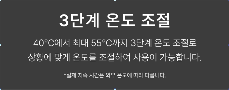 발열온도는 40도~55도 까지 대분분 3단 <<1단 40~45도, 2단 45~50도, 3단 온도로 50~55도>>으로 구성되어 있습니다.