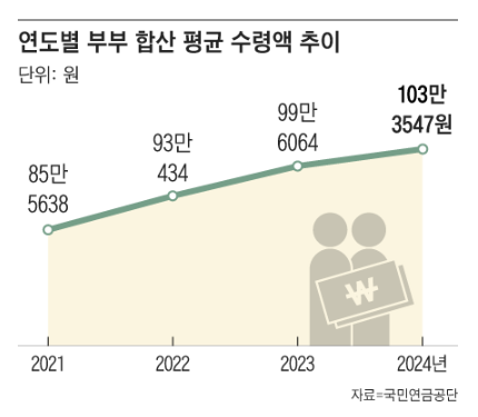 남편과 아내 모두 1988년 국민연금 제도 도입 첫 해부터 가입해 가입 시기가 길었고, 연금 수령 시기를 5년 연기해 받아서 다른 연금 맞벌이 부부와 비교해도 격차가 컸다.