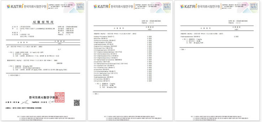 다. 한국의류시험연구원에 시험성적서가 있는지 확인