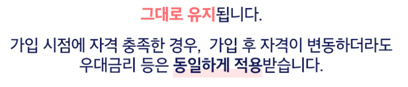 ◆ 정답 : 우대 금리 등은 동일하게 적용받습니다.