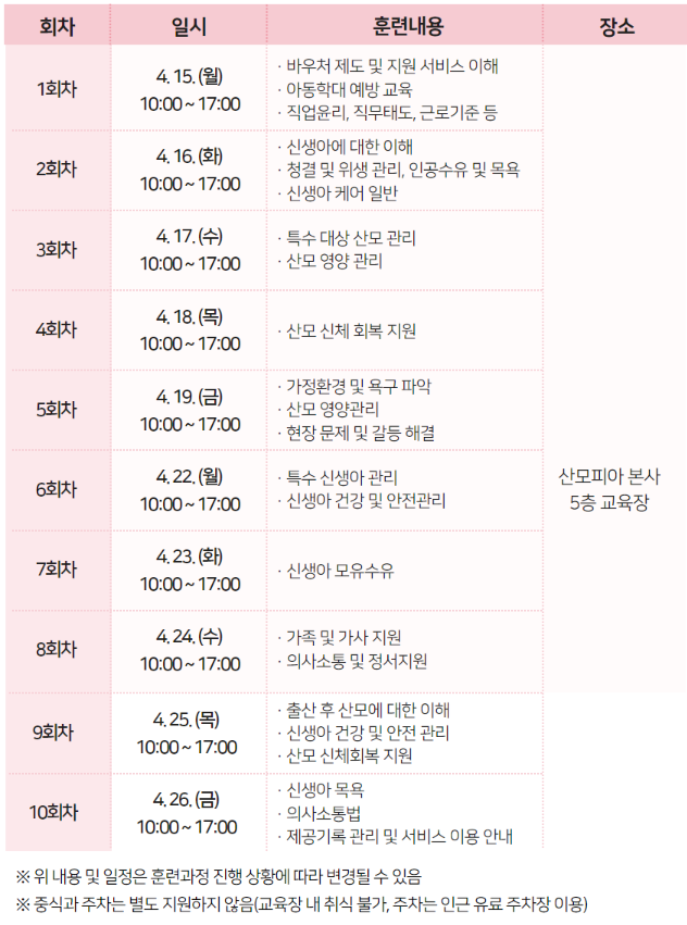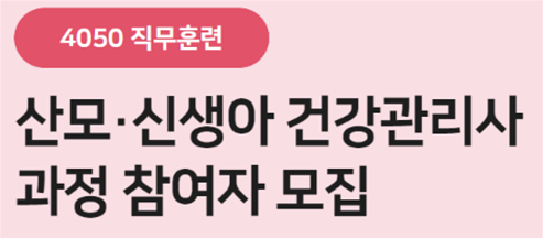 | 공고명 | 4050직무훈련 「산모·신생아 건강관리사 양성과정」 참여자 모집 | ||