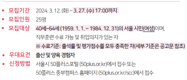 | 문의처 | 02-460-5211 | 모집기간 | 2024-03-12~2024-03-27 |
