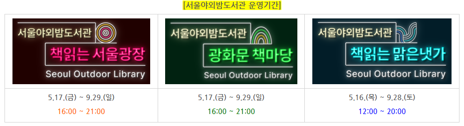 서울야외도서관이 5월 17일 금요일부터 야간운영으로 전환됩니다!