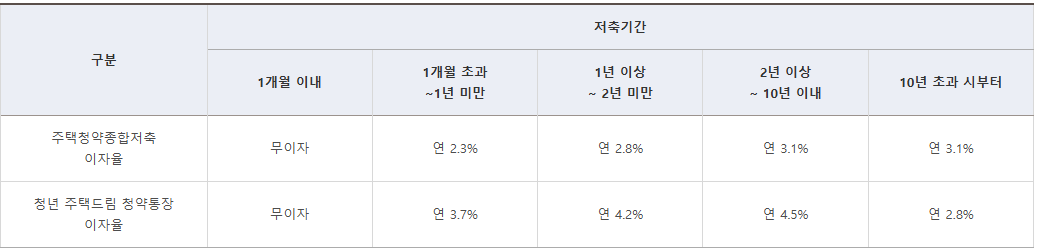 '나. 청년 주택드림 청약통장' 이율은 가입기간 2년 이상일 경우 무주택기간에 한하여 적용(가입일로부터 10년 이내의 기간),