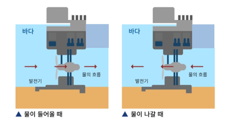 나. 해력발전소의 원리는 육지와 섬의 사이 강하게 흐르는 바닷물의 흐름(밀물과 썰물)을 이용하는 것으로 제가 기술자가 아니라서 정확한 수치로 제안은 못 하지만 어마어마한 힘을 가지고 있습니다.