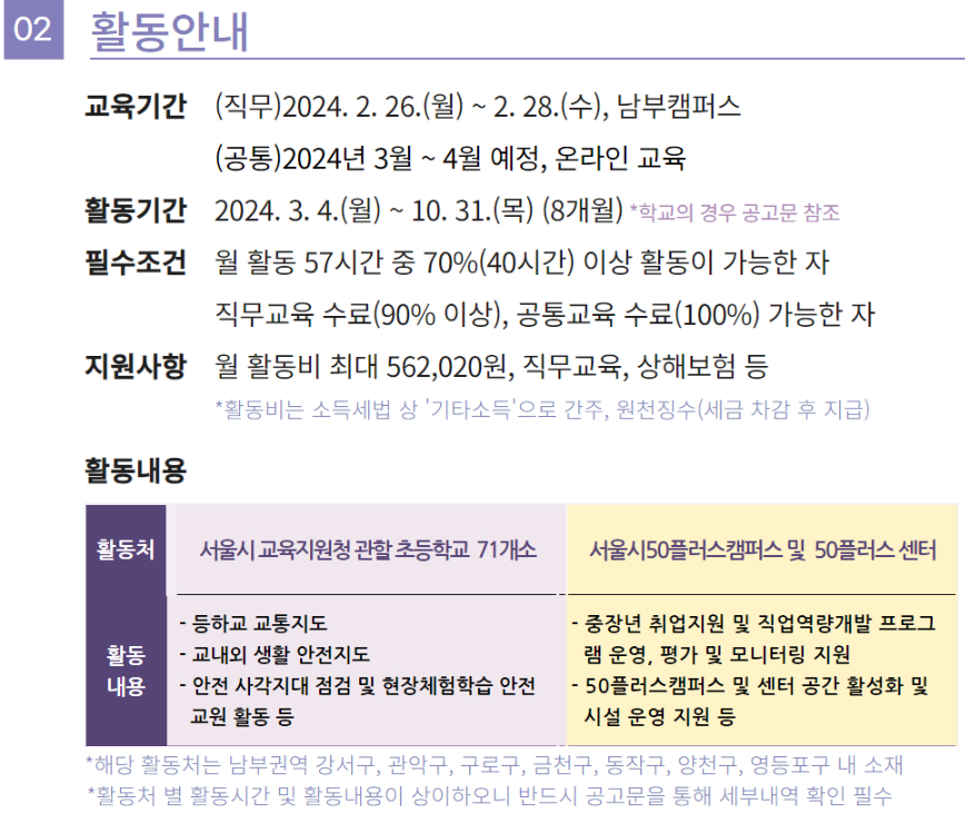 | 사업연도 | 2024년 | 세부사업명 | 서울시50플러스재단 1차 공동모집(남부권 교육안전) |