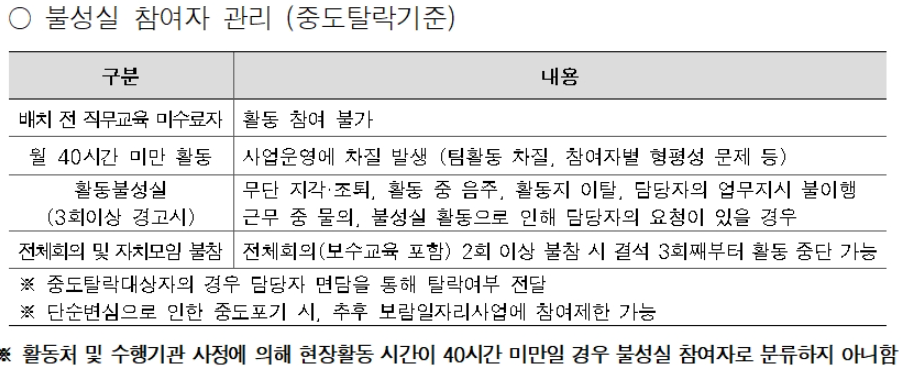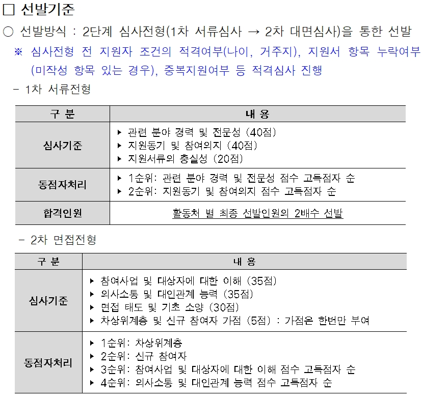 - 활동처 별 우대요건 확인 필요 (2.중부권 보람일자리사업단 활동처 세부내용 참고)