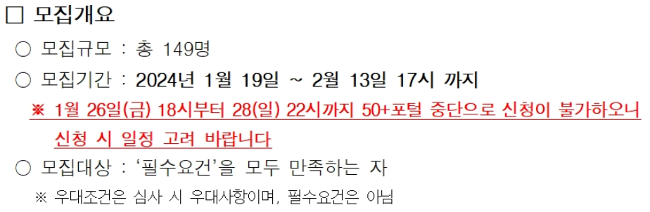| 문의처 | 02-460-5214 | 모집기간(시간) | 2024-01-19(9시)~2024-02-13(17시) |