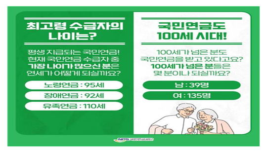 100세 이상 수급자는 모두 국민연금에 가입한 자녀가 먼저 숨지면서 남긴 유족연금을 받는 수급자들이다.