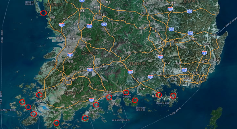 다. 이 어마어마한 힘을 대충 살펴보면 현수교와 사장교가 설치된 곳 즉 육지와 섬을 연결하는 “거제도, 진도, 남해도, 완도 등”을 연결하는 다리 하부 바닷속에 프로펠러를 설치하면 사시사철 물의 흐름을 이용하여 발전할 수 있는데, 제가 조사한 바 아래 그림과 같이 13개소가 후보지가 될 수 있습니다