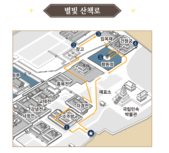 장고, 집옥재와 팔우정, 건청궁을 거치며 궁궐의 옛 이야기를 마주하고, 쏟아지는 별빛아래에서